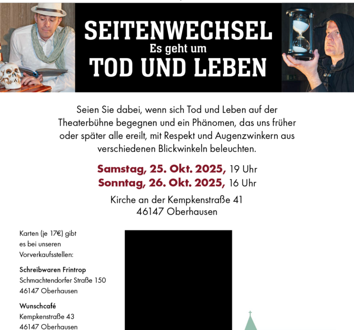 „Himmel & Erde in der Kirche an der Kempkenstraße“eine Kunstausstellung vonDr. Judith Pasquale und Rosemarie Pott Vernissage am Freitag, 3. Mai 2024, um 18:30 Uhr (Einlass ab 17:30 Uhr)Einführung: Dr. Christine Vogt, Direktorin Ludwiggalerie OberhausenMusikalische...